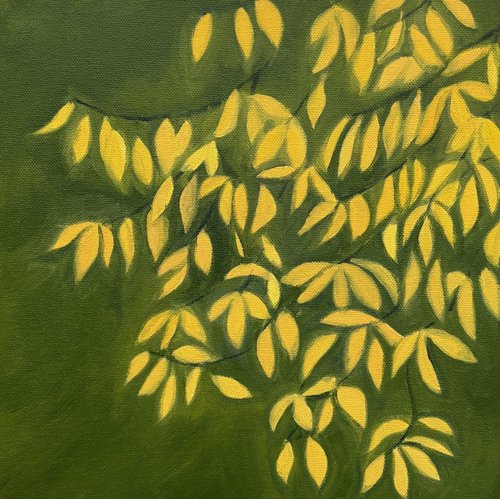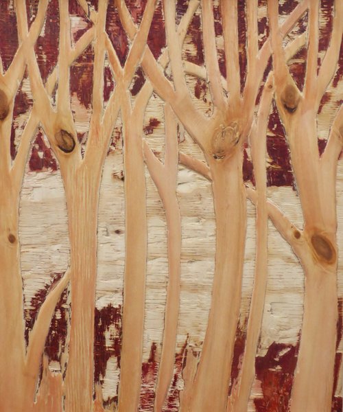 These paintings are all on wood, which I carved to create texture, then painted in acrylic paint, mixed media and gold leaf.